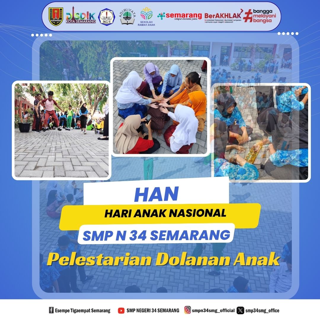 Semarang, 23 Juli 2025, SMP Negeri 34 Semarang memperingati Hari Anak Nasional sebagai bentuk kepedulian dan komitmen terhadap pemenuhan hak dan perlindungan anak. Tahun ini, tema yang diangkat adalah "Anak Cerdas Digital, Hindari Layar, Jaga Nalar" sebuah seruan reflektif dan ajakan bijak di tengah derasnya perkembangan teknologi informasi yang telah menyentuh hampir seluruh aspek kehidupan, termasuk dunia anak.